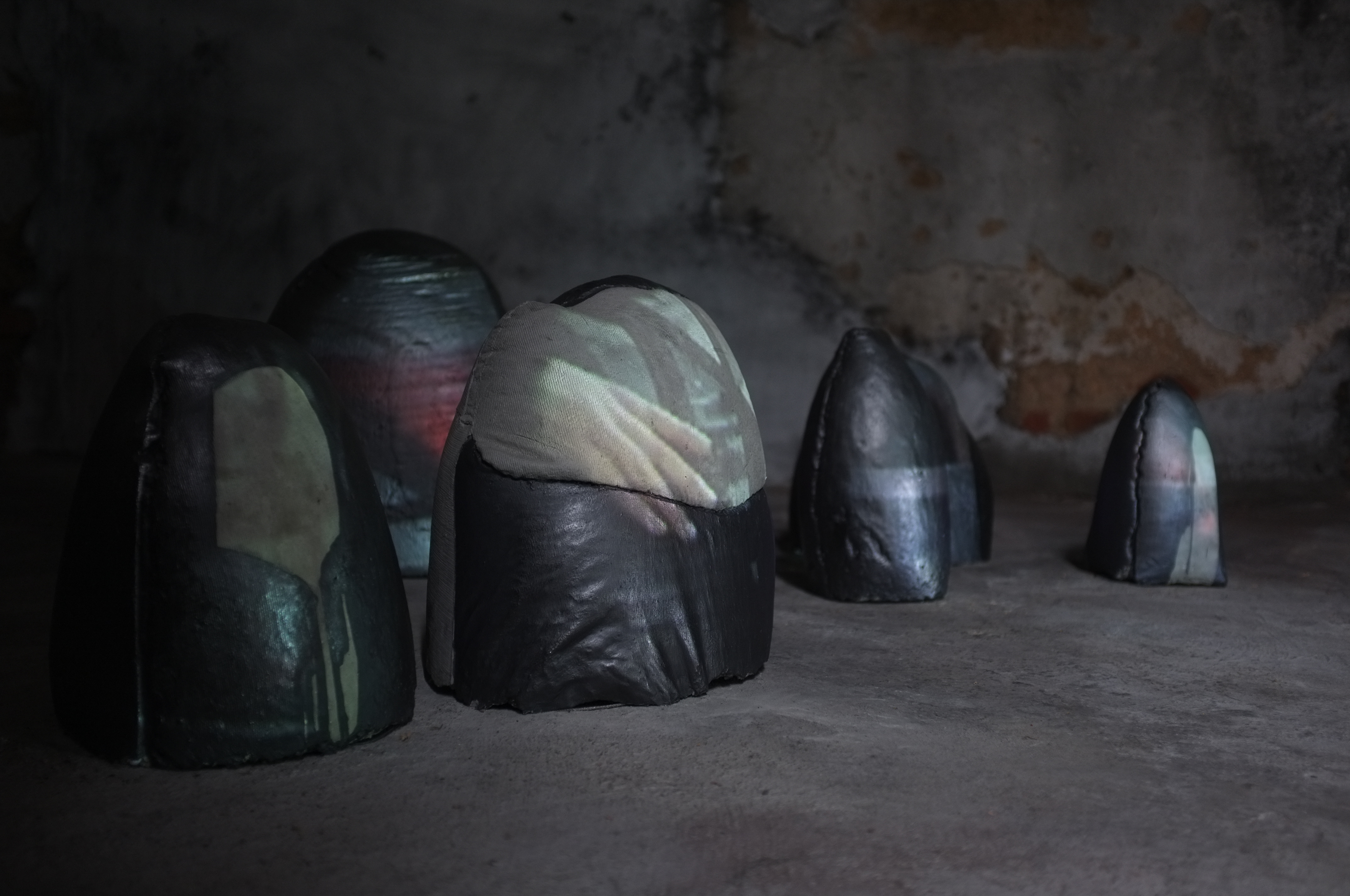As artistas apresentam intervenções site-specific (para o lugar) e matter-specific (sobre as matérias fabris) numa exposição bipartida que apresentará várias perspectivas destes lugares.