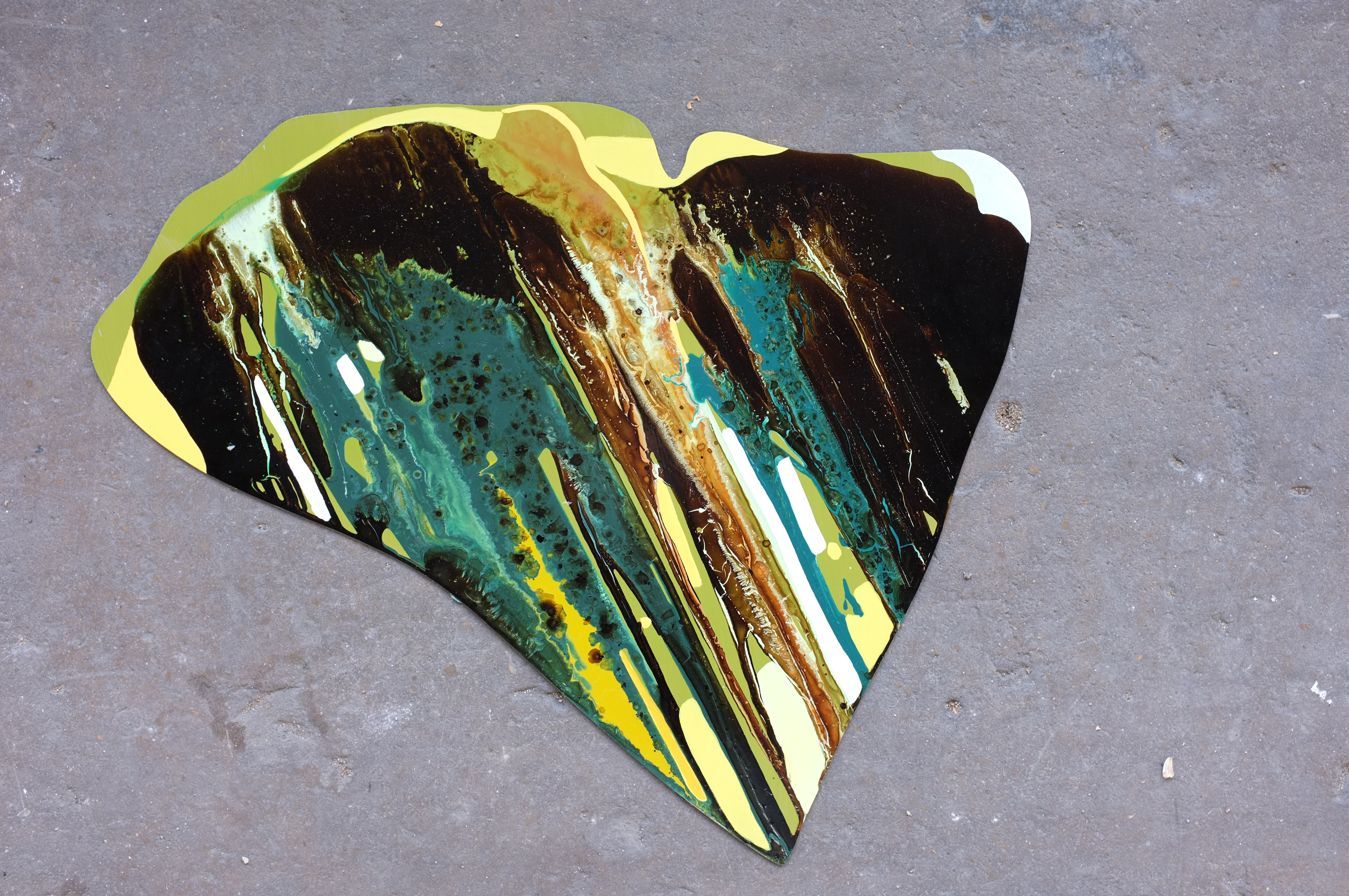 No seu conjunto a árvore apresenta as cores verde, amarelo, vermelho e cinza, tonalidades associadas, nomeadamente, à fertilidade dos solos, à juventude, à força, à vida, ao calor, à natureza, à alegria e à esperança. À semelhança da instalação criada nas fachadas da Pensão Amor, Mamba-de-Jameson, criámos, aqui, uma mancha orgânica na fachada frontal do edifício no sentido ascendente distribuindo de modo harmonioso as formas das folhas e pétalas de Ginkgo Biloba. Cento e cinco chapas de alumínio recortadas a laser. Cada artista trabalhou uma forma específica de folha com diferentes dimensões e quantidades. A peça conta ainda com oito néons em silhueta luminosa que pautam a instalação de noite. As oito folhas espalhadas na fachada em néon surgem como pontos de iluminação mapeando a “árvore” e o caminho nocturno de regresso à residência, como um farol. Entre chapas com mais trabalho minucioso elaboradas pelas artistas, de acordo com as técnicas que dominam surgem chapas monocromáticas que fazem a ligação entre as restantes.