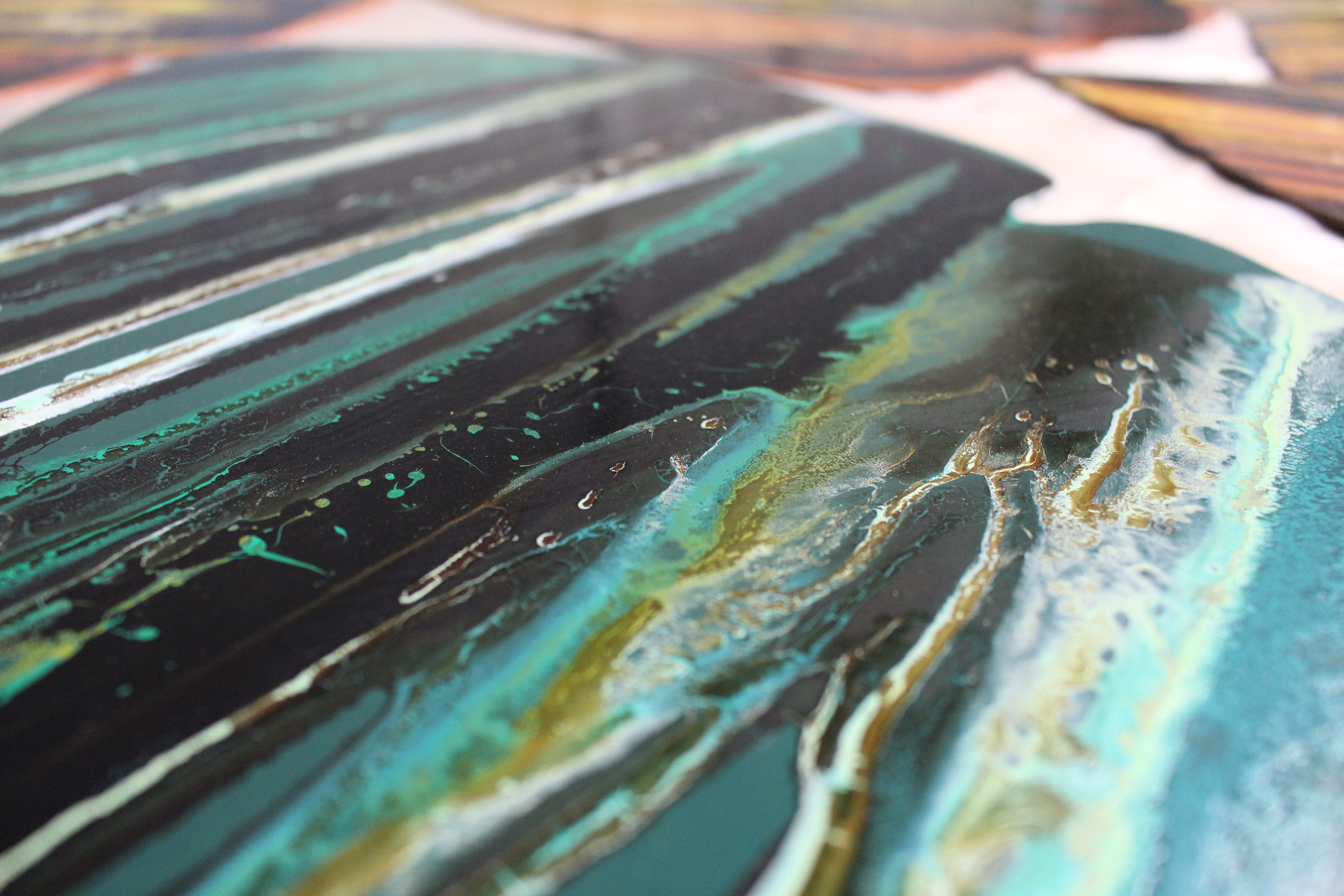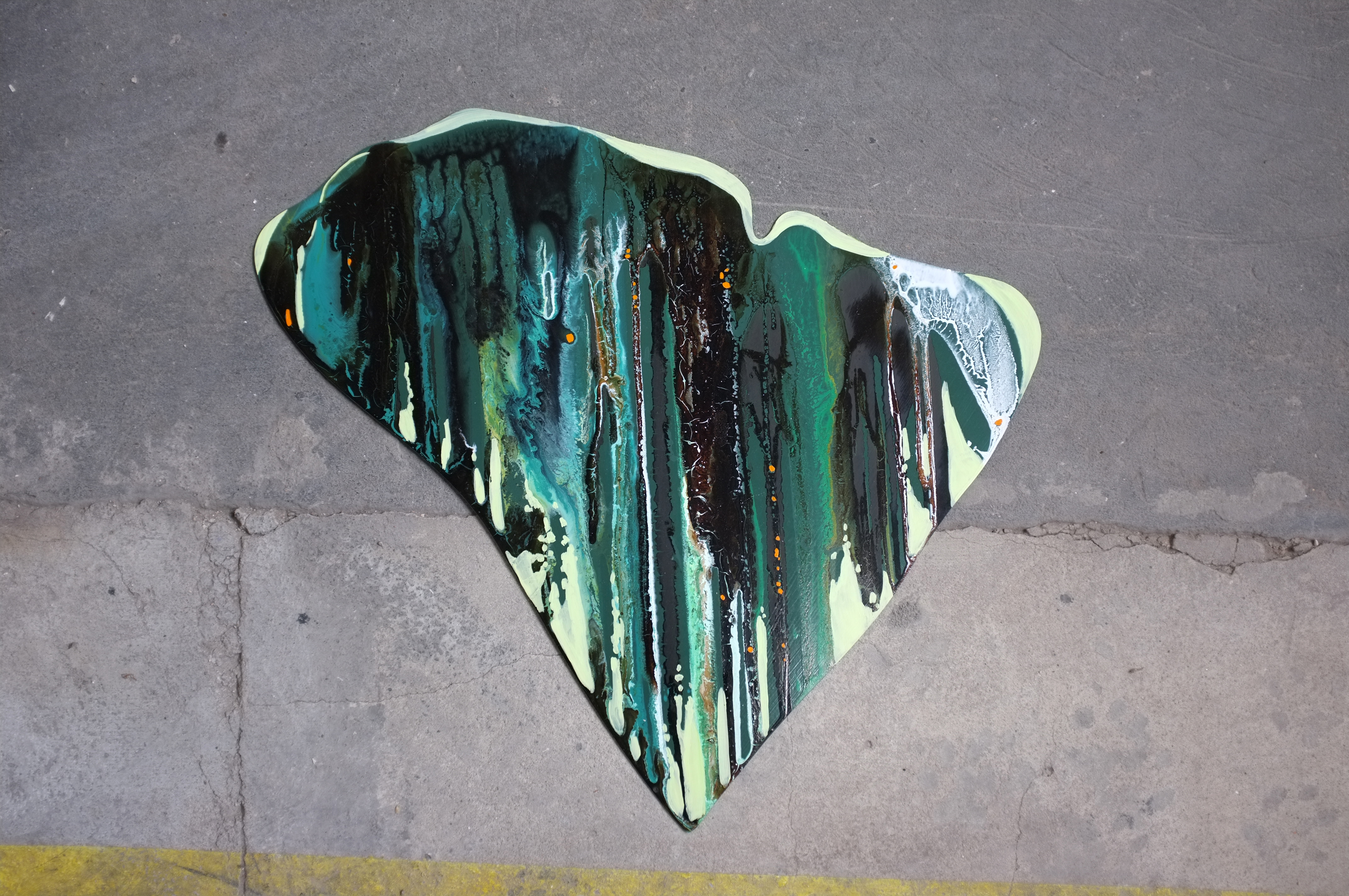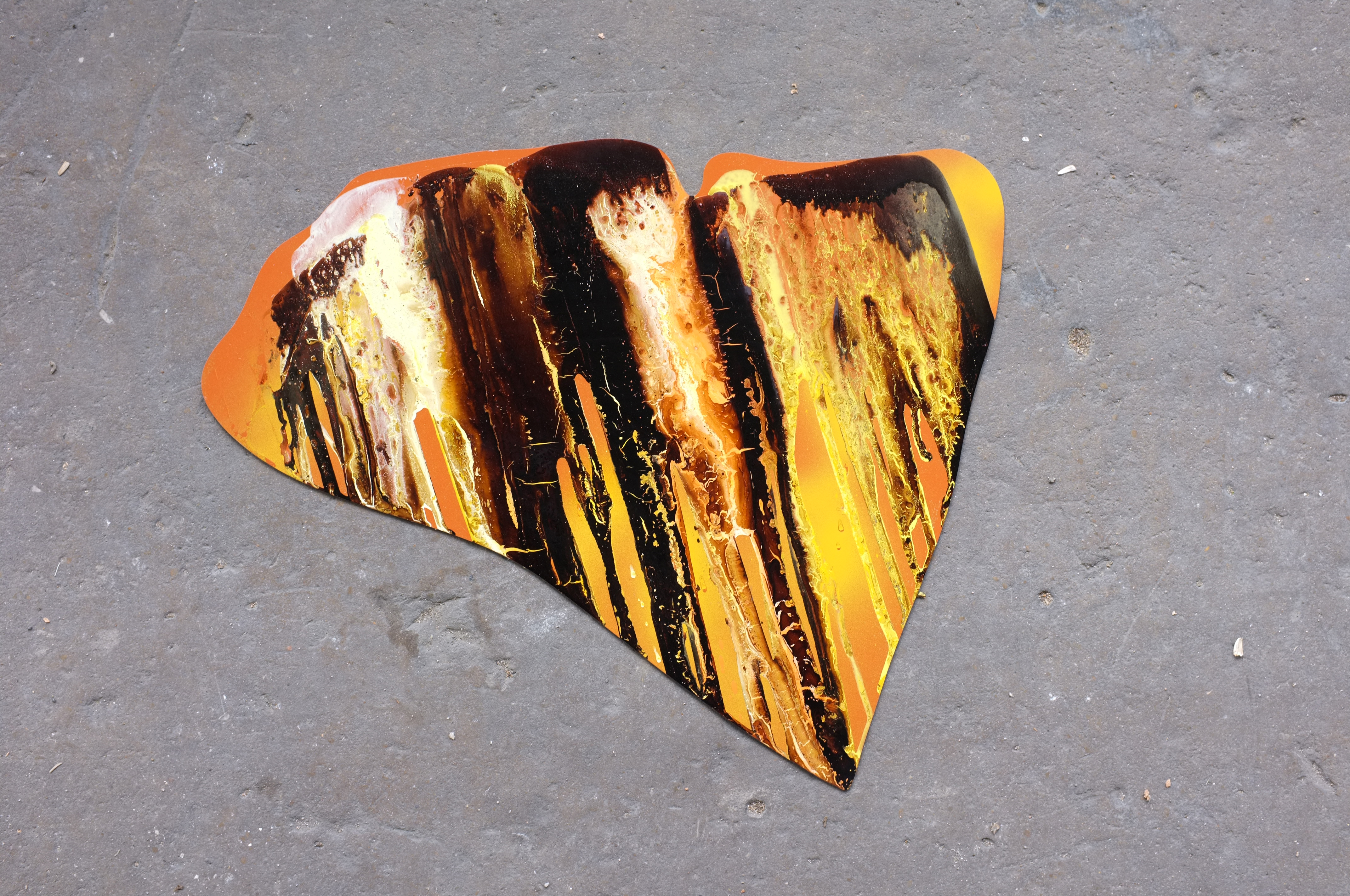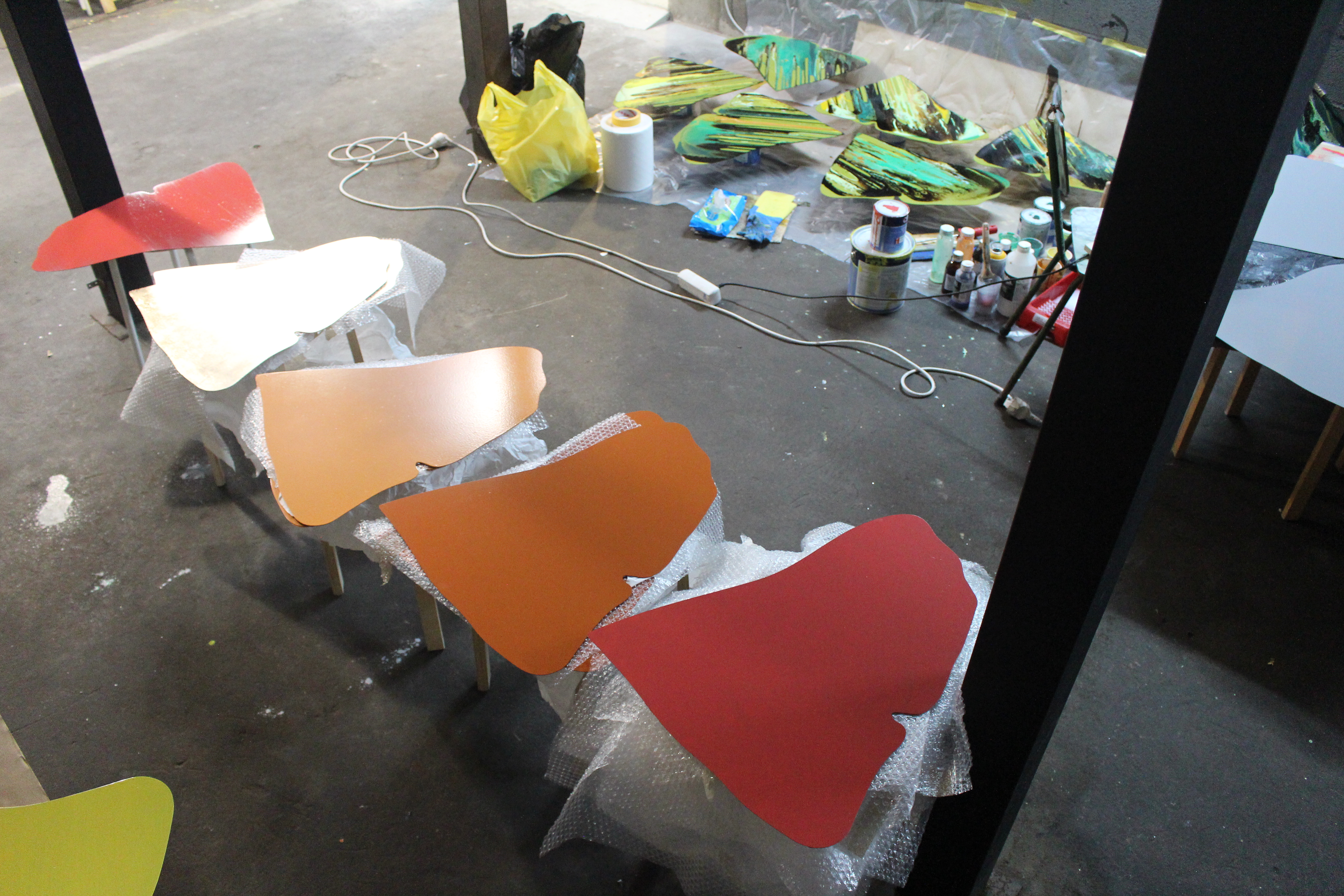 A intervenção tem uma leitura tridimensional devido ao distanciamento das chapas da parede, cada conjunto de cada artista tem uma medida de afastamento distinta.